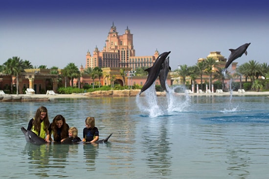 Hier schlagen Kinderherzen höher wenn sie im Atlantis the Palm mit Delphinen schwimmen können. Es eignet sich für alle Altersklassen denn es sind sehr friedliche Säugetiere der Welt.